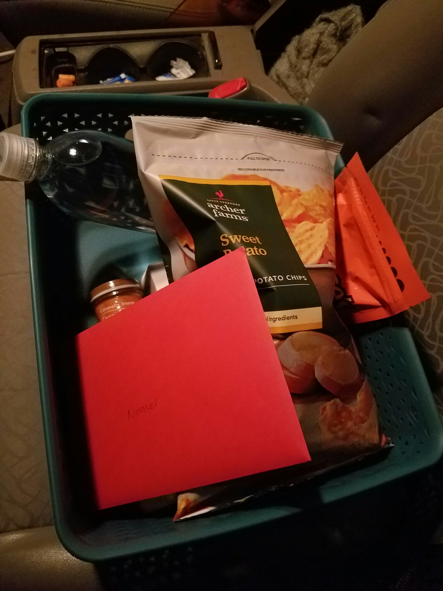 On Thursday morning at 6:30am I opened the car door to start on my way to St. Louis. My dreamboat of a husband surprised me with a birthday/road-trip basket in the front seat complete with snacks for the journey, hand written bday card, and FitBit.