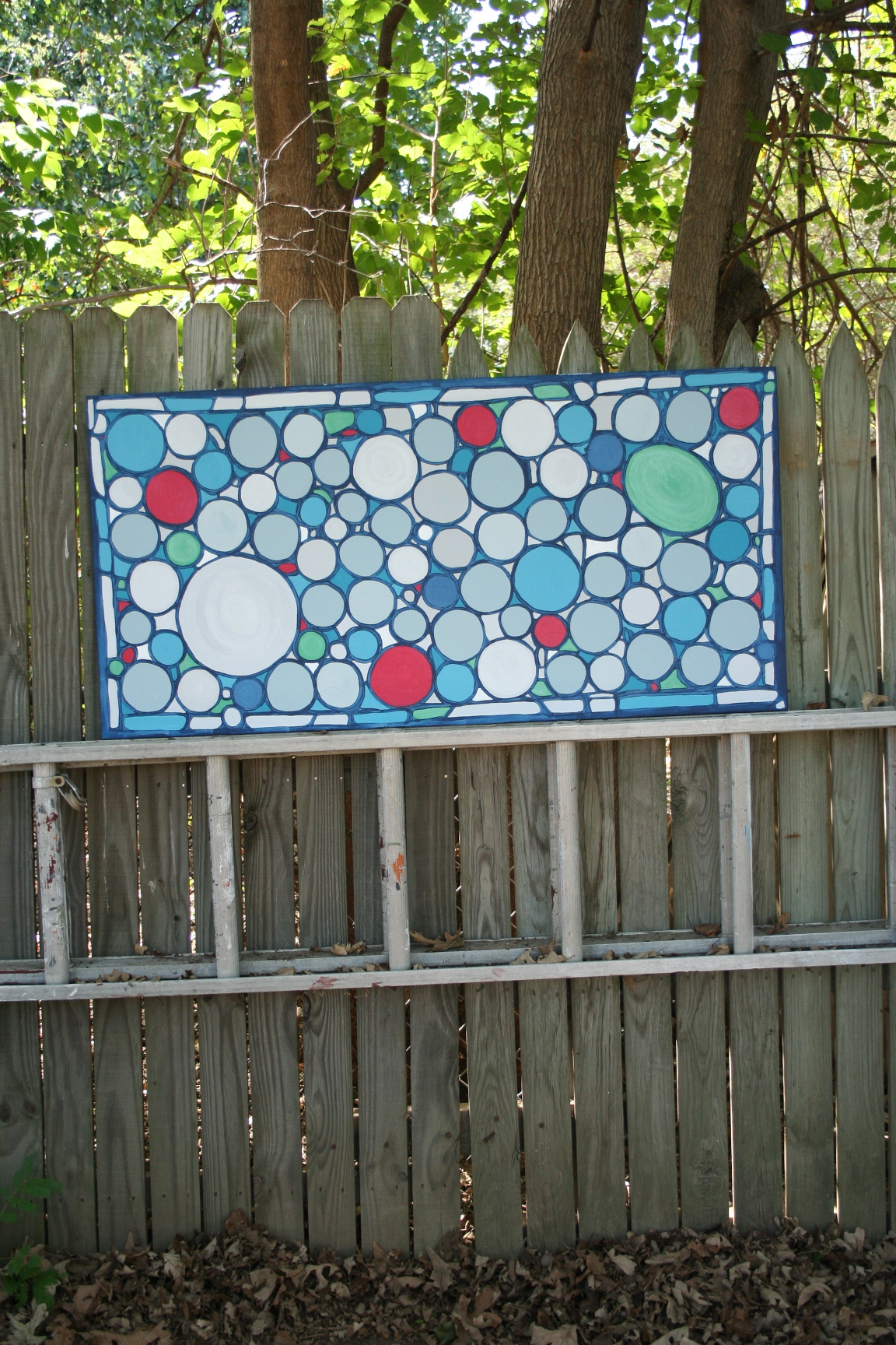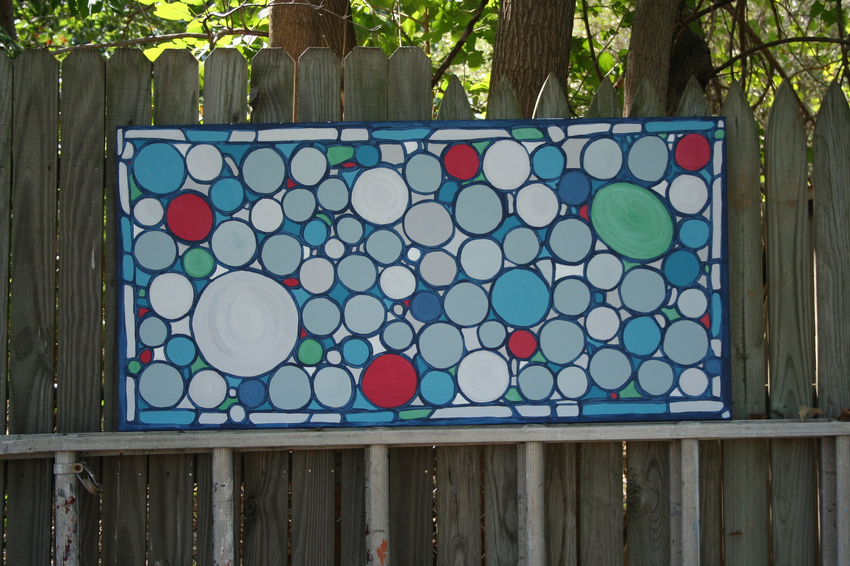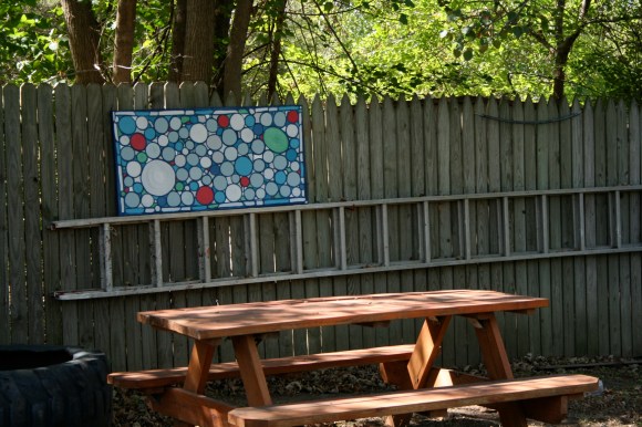 For the past 4 years Josh and I have had a very large, very blank canvas hanging on our bedroom wall. I had been meaning to paint something on it for a long time…about 4 years, but wasn’t sure what I wanted until I stumbled upon this little beauty on Pinterest. It’s a custom ‘stained glass’ window made, from recycled glass and sea glass, by Daniel Maher Stained Glass. (Check out their website to see more really amazing stained glass art.) I fell in love and was instantly inspired.