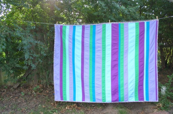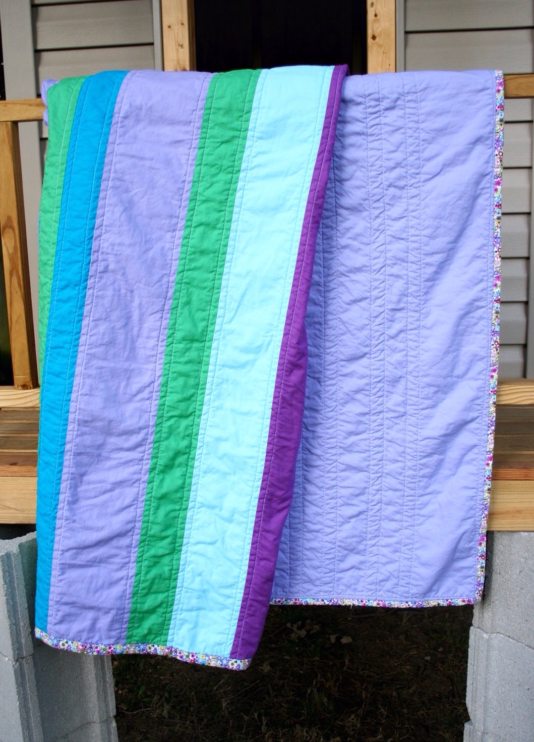 I love a simple strip quilt. They are fun to make and always turn out so cute.
